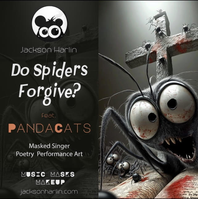 Do Spiders Forgive?Jackson Harlin’s album uses the spider as a metaphor for self-forgiveness—a paradox where the self must both forgive and be forgiven.Like a spider weaving and dismantling its web, the album explores the duality of creation and destruction: shedding old identities while rebuilding through acts of self-love.The spider’s intricate labor mirrors the internal struggle to release guilt and shame, where the “forgiver” and “forgiven” blur into one.At its core, the album grapples with the question: Who forgives whom?